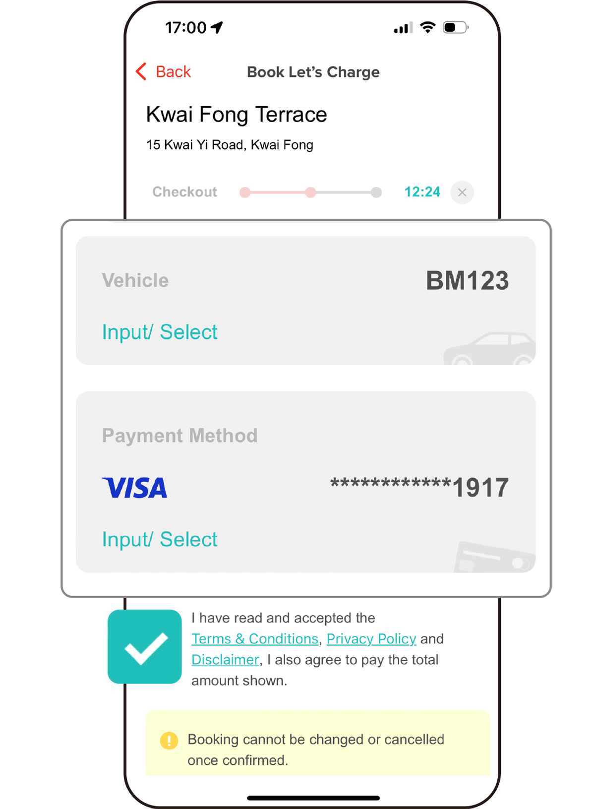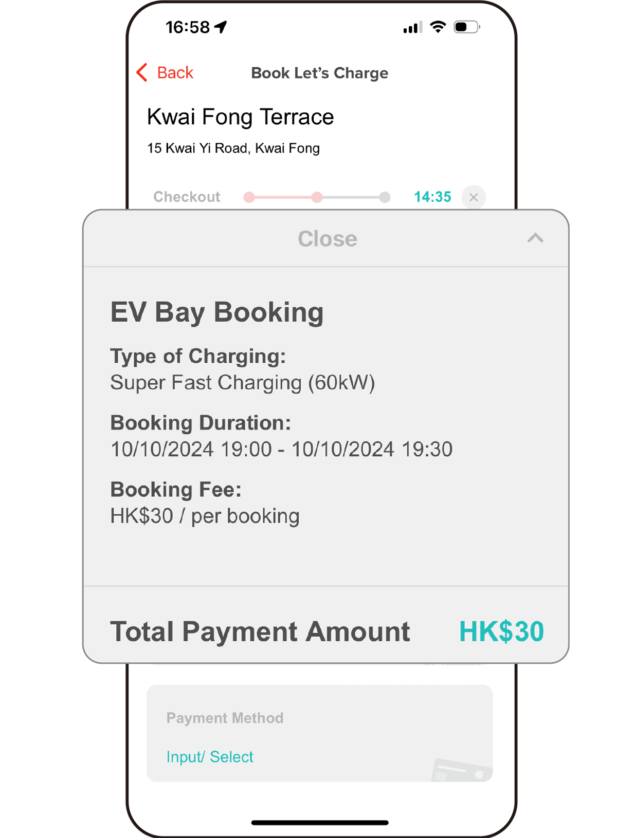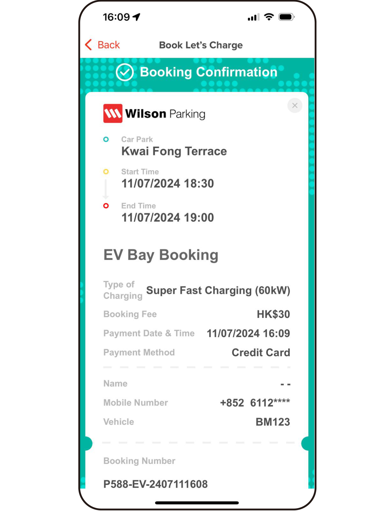 2) Select car park from the EV Let’s Charge Car Park List, tap “Book”.