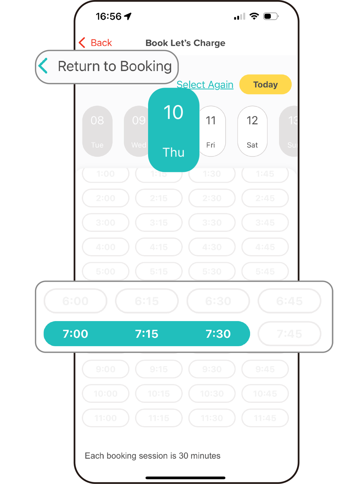 3.1) Tap "Return to Booking" after selecting the booking date and time.